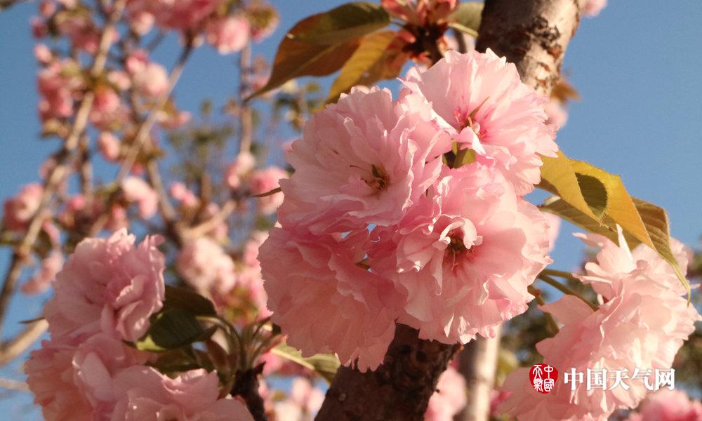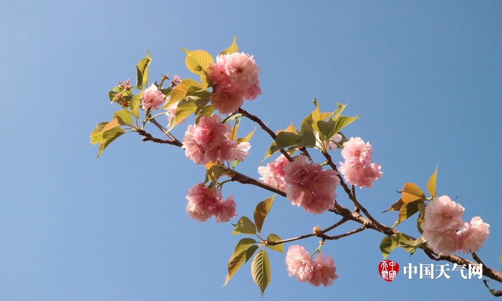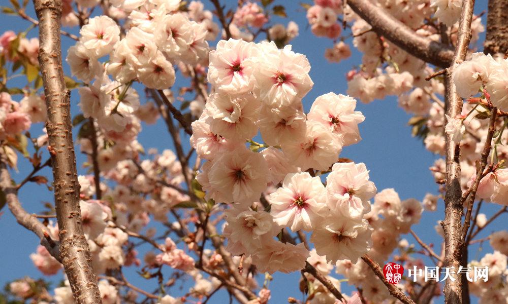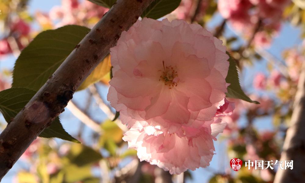 在蓝天的映衬下,樱花愈发好看。(摄影:任乐)