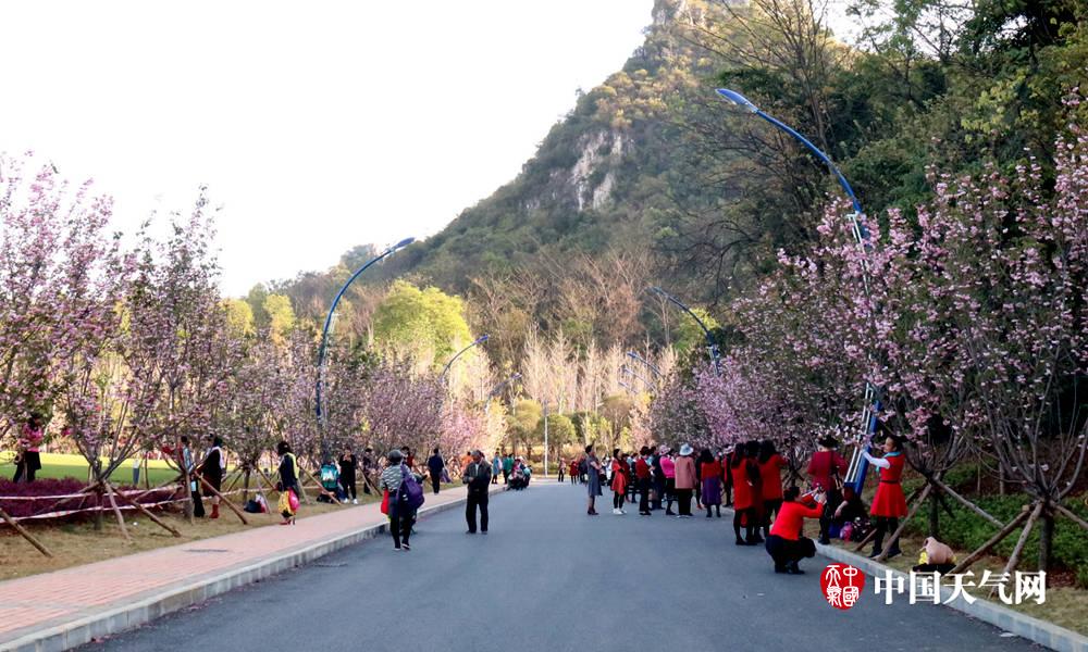 9日,柳州阳光明媚,不少市民朋友趁着好天气前去观赏樱花。(摄影:任乐)