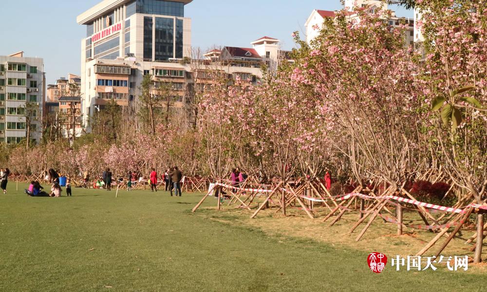 9日柳州阳光明媚,正是观赏樱花的好时候。(摄影:任乐)