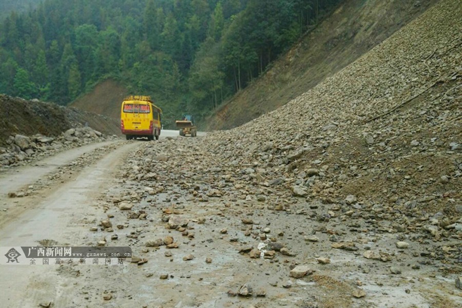 养护部门已清理半幅路面,道路恢复通车。广西新闻网通讯员 李世丰供图