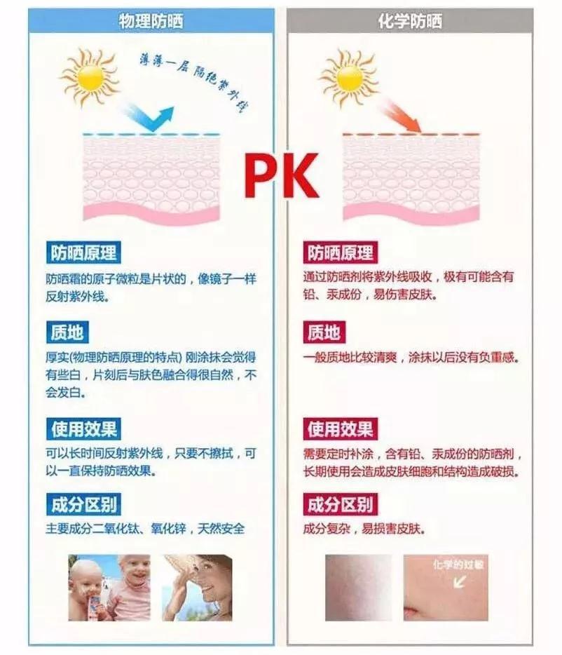 市场上的防晒霜有两种类型,一种是化学遮光剂,另一种是物理防晒剂。