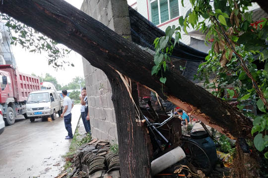 中国天气网广西站讯 受台风外围环流影响,今天(15日)下午,桂林市出现大风天气,导致一小区居民楼外侧的排水管道被大风吹倒,直接砸中停放在楼下的一辆小轿车。另外,中山北路边上的一棵绿化树也被吹倒,并横在非机动车道中间,阻碍交通。桂林市气象局预计,明天桂林市区仍有短时阵雨或雷雨天气,市民出行需注意防范。(图文/黎微微)