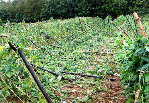 中国天气网广西站讯 今年第22号台风“山竹”横扫玉林,给玉林带来了严重的风雨影响,大片香蕉树被拦腰折断,即使给树做了加固措施,也抵不住大风,很多树上都已经结出了还未成熟的香蕉,香蕉田里也部分积水。据蕉农介绍,此次受灾的香蕉达40亩,直接经济损失达20万。(文/邓雅倩 图/蔡雨容)
