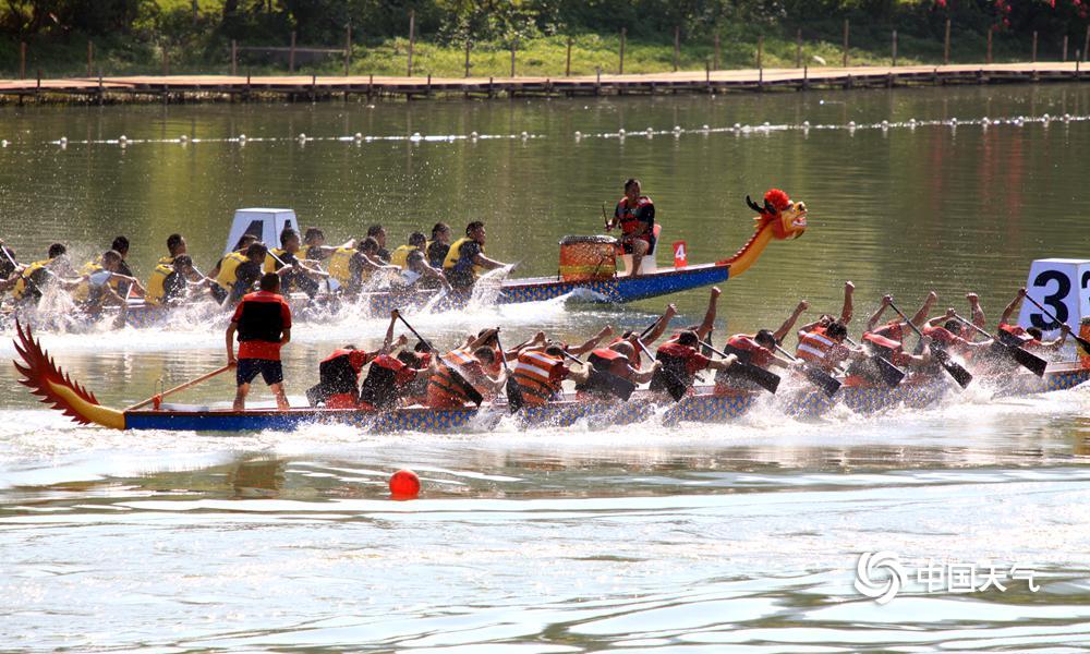 中国天气网广西站讯 10月2日上午,环江天气晴好,2018年广西龙舟系列赛总决赛在环江水上运动中心精彩上演。正值国庆长假期间,比赛吸引了大批观众观看。赛场上,全体运动员同舟共济、奋勇争先,让人看得热血沸腾。(图文/陈耀飞)