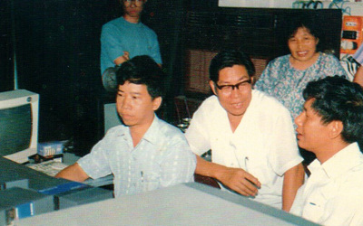 1994年2月,自治区党委副书记丁廷模到气象部门视察工作