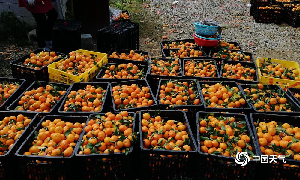 中国天气网广西站讯 12月16日以来,德保出现连续晴好天气,气温逐渐回升,正是采收的好时候。德保县几大脐橙、砂糖橘种植基地里,工人们趁着好天气忙着采收、筛选、装箱果实,一片繁忙景象。(图文/韦庆华)
