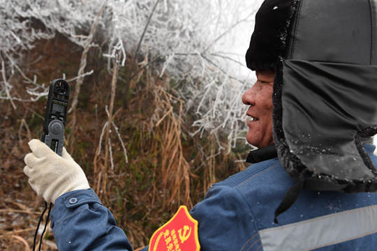 中国天气网广西站讯 受强冷空气影响,今天(30日),西林县至隆林县交界处出现雨夹雪,部分路段出现结冰,温度低至零下1℃,山上松木满枝满树的冰挂,犹如珠帘长垂,山风拂荡,分外晶莹耀眼(图/莫保结 文/他文波)