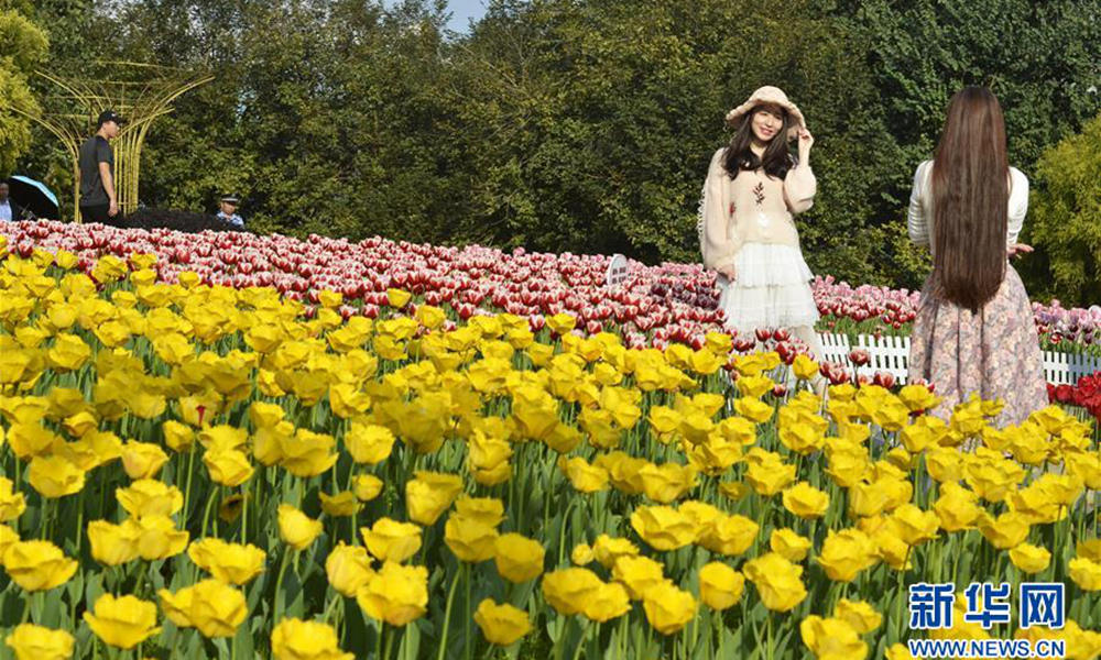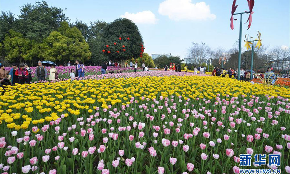 2月7日,人们在广西柳州园博园观赏郁金香。 春节假期,人们纷纷来到户外赏花游园,感受春天的气息。(图文/李斌)