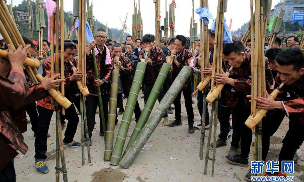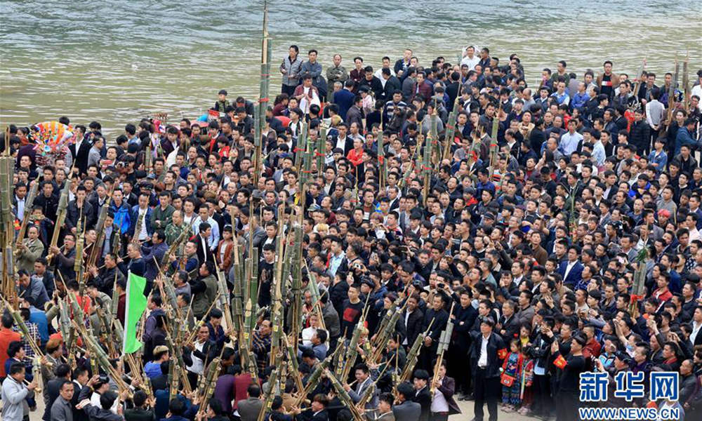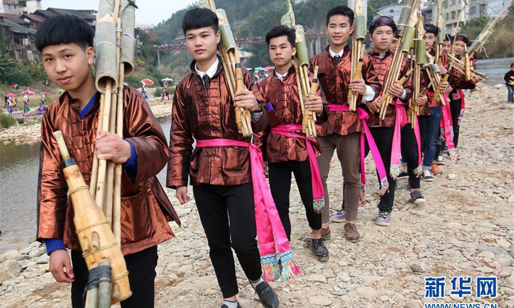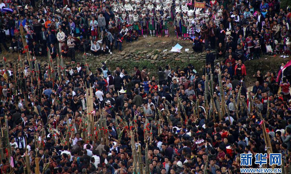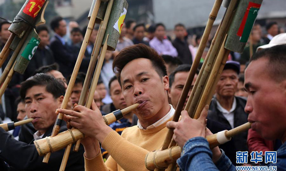 2月7日,人们在大年乡芦笙比赛现场观赛。当日是大年初三,广西柳州市融水苗族自治县大年乡举行芦笙比赛,来自广西、贵州等地的60多支芦笙队参加芦笙比响比赛,热热闹闹庆贺新春。(图文/龙涛)