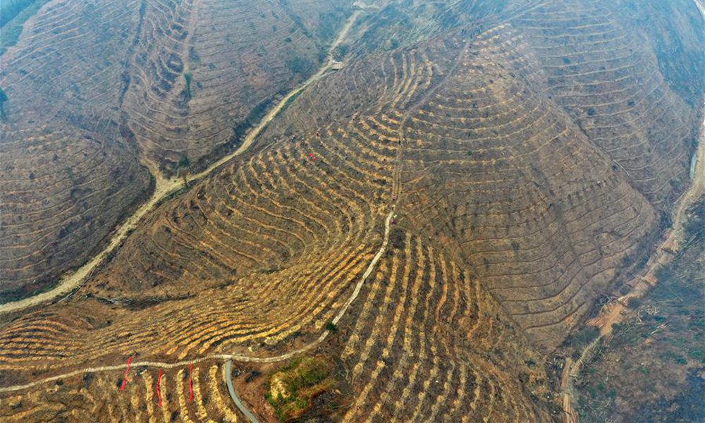 当日,广西三江侗族自治县丹洲古篮千亩油茶基地一片忙碌,当地群众正抢抓农时种植油茶。据介绍,三江侗族自治县现有油茶林61.7万亩,覆盖全县15个乡镇的86个贫困村。目前,全县正大力推进油茶品种改良工作,助力当地群众脱贫致富。图为广西三江侗族自治县丹洲古篮千亩油茶基地局部(3月13日无人机拍摄)。(摄影:陆波岸)