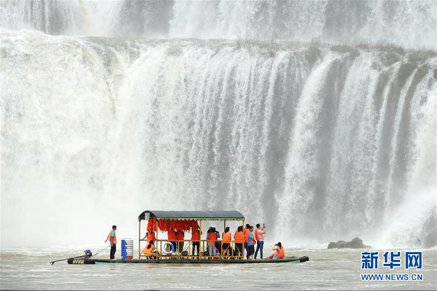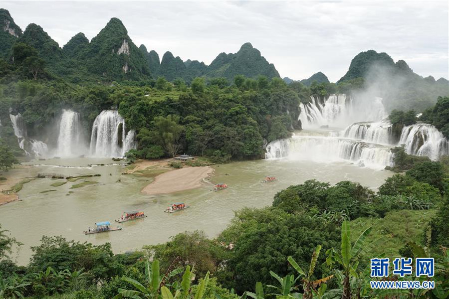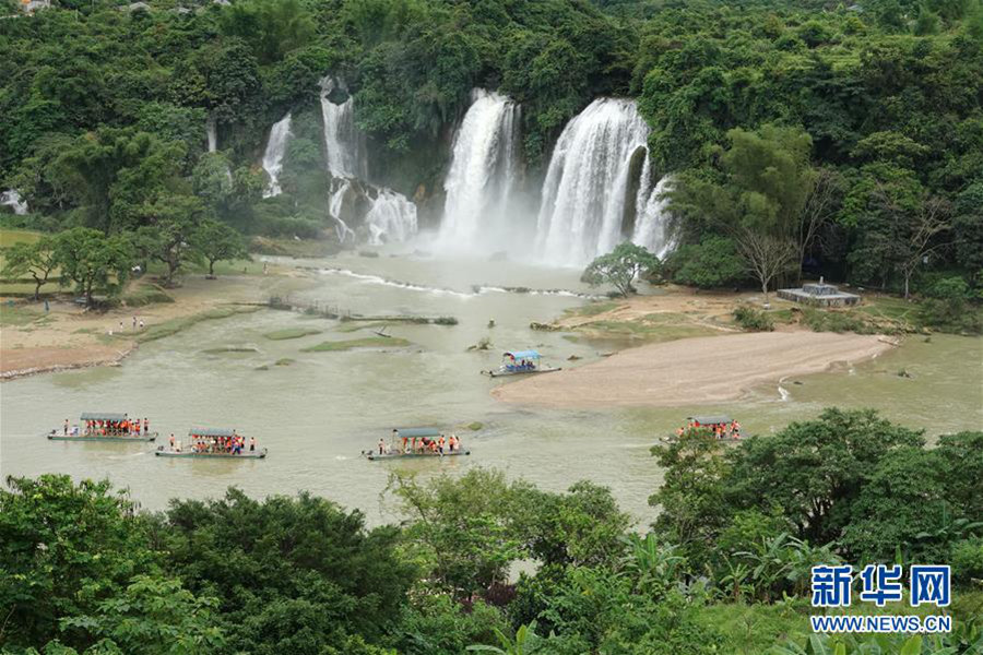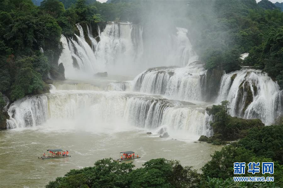进入6月,由于雨量充沛,位于中国与越南边境的广西崇左市大新县德天瀑布进入最佳观赏期,吸引大批游客前来观赏。德天瀑布与紧邻的越南板约瀑布相连,是亚洲最大跨国瀑布。喻湘泉 摄