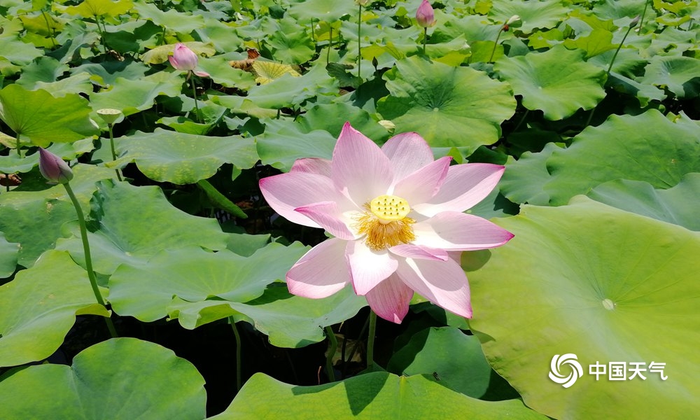 中国天气网广西站讯 6月30日,通讯员来到福兴高埠村荷花园,举目望去,艳阳下的荷花格外耀眼,亭亭玉立,空气中流淌着荷花的幽香,扑鼻而来,沁人肺腑,让人感觉心旷神怡。(图/殷智 文/廖璇 殷智)