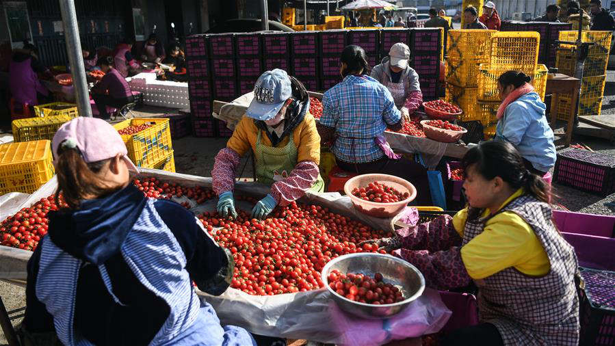 时下正值秋冬菜收获季节,广西百色市田阳县“南菜北运”基地一派繁忙景象,菜农们在抓紧抢收,客商们则加大蔬菜收购调运力度,确保蔬菜及时供给北方市场。新华社记者 张爱林 摄