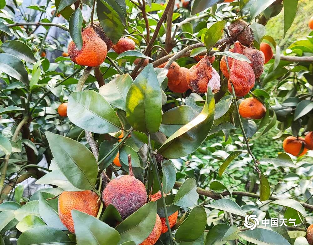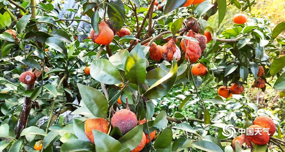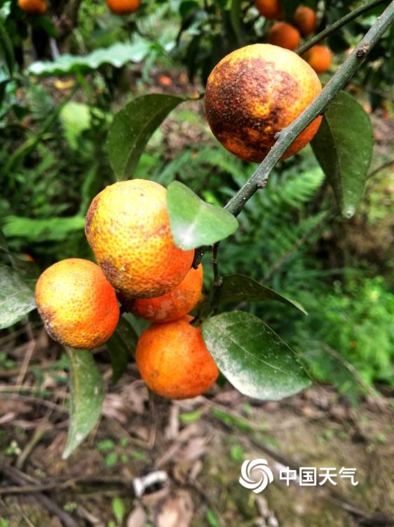 中国天气网广西站讯 受前期持续低温冷冻影响,3月2日通讯员在桂林荔浦果园看到,一些没来得急盖膜的砂糖桔已被冻坏在树枝上,或掉落腐烂,果农损失严重。(图文/李会玲 何建坤)