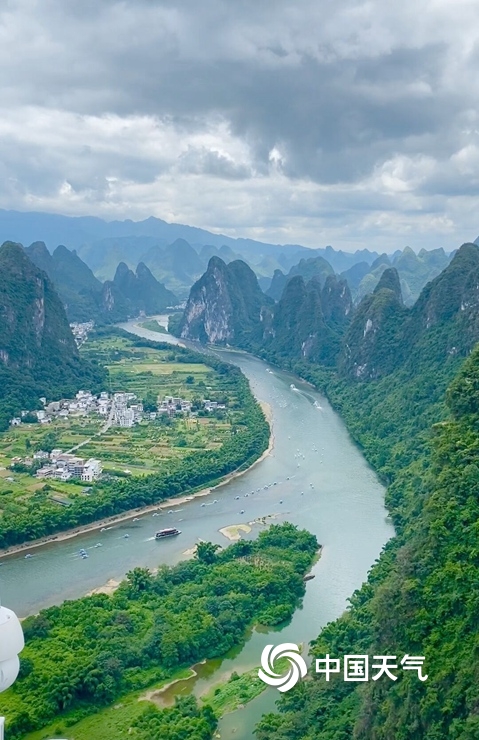 中国天气网讯 盛夏8月,骄阳之下,桂林阳朔的绿水青山被映照成画。山静水悠,风轻云淡,站在山顶独揽风骚,悠然自得。2023年8月6日拍摄于广西桂林阳朔相公山。(图文/唐晓珊)
