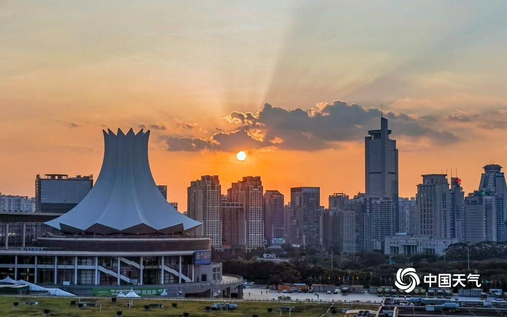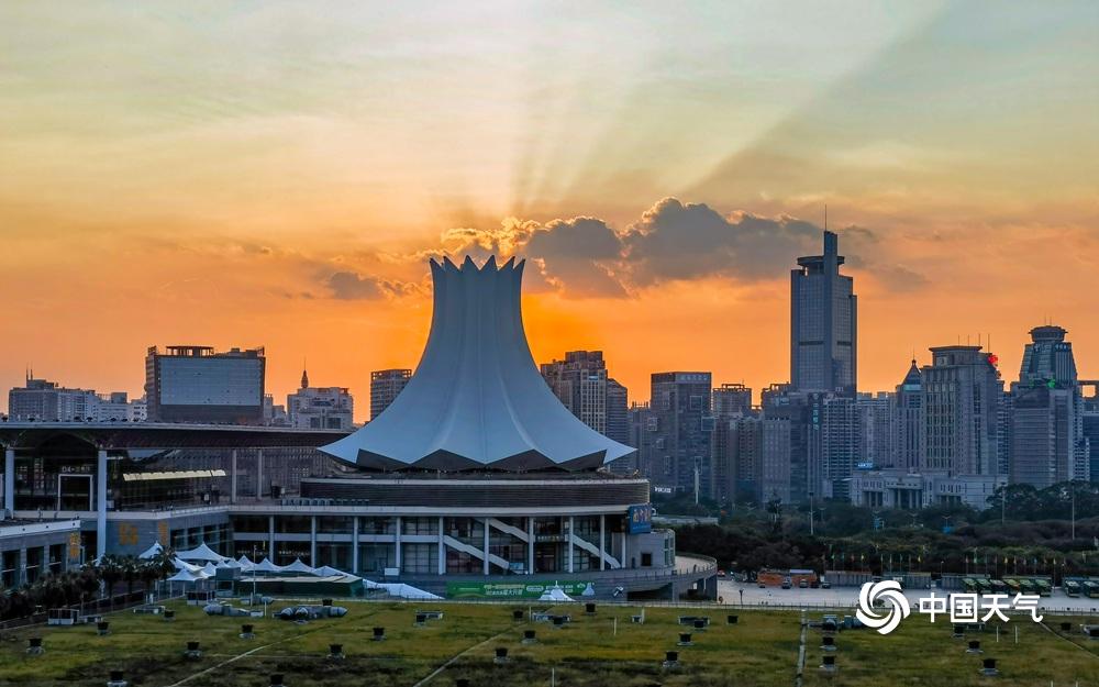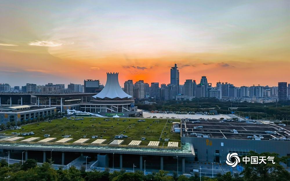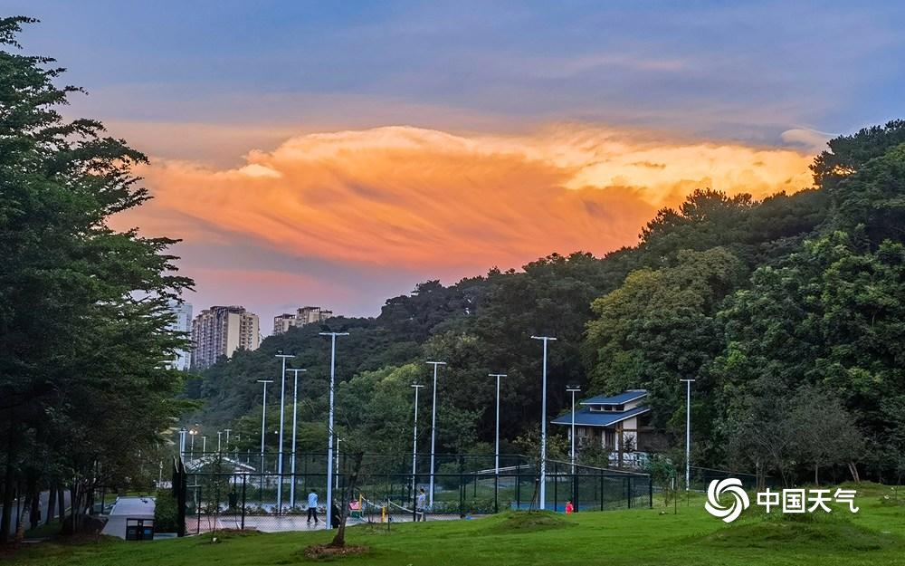 中国天气网广西站讯 7月27日,日落时分,橘红交织的霞光漫过南宁的天际,美不胜收。(图/曾海科 文/周玉)
