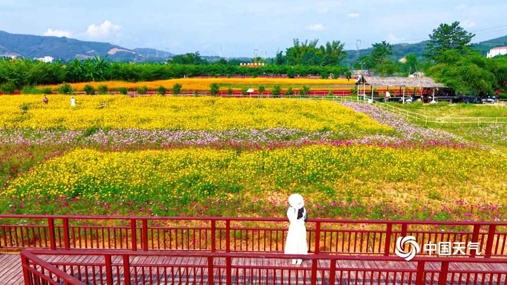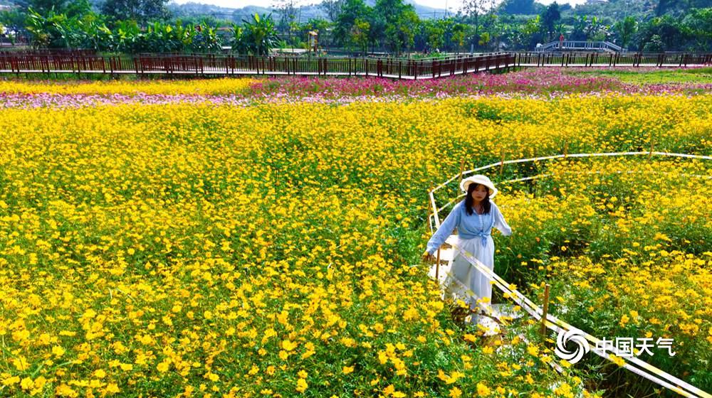 中国天气网广西站讯 秋日晴空下,百色福禄河湿地公园的花海绚烂绽放,景观层次分明;蜜蜂穿梭花间,蝴蝶翩跹起舞,一派生机盎然。市民携家带口,或漫步赏花,或驻足拍照,尽享秋日浪漫。(图/覃诗宁 邓慧兰 文/黄露莹)