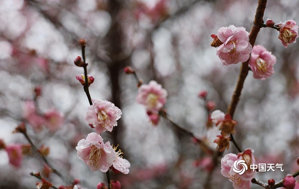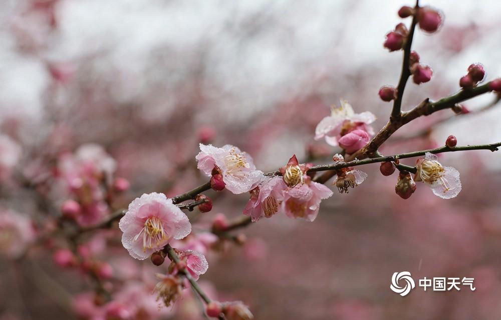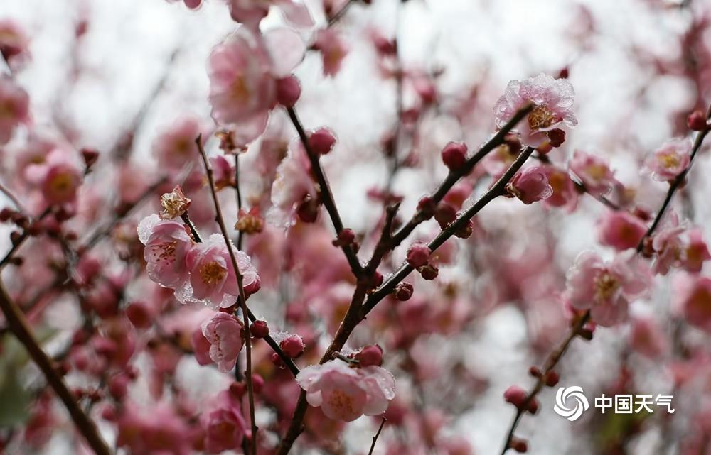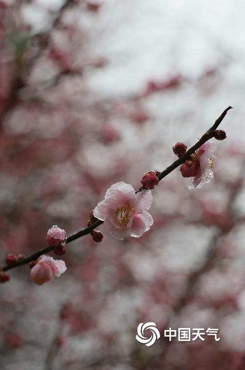 中国天气网广西站讯 1月20至21日,桂林资源县迎来小雪天气,中峰镇车田湾村的梅花恰逢其时竞相绽放。雪落枝头,粉红梅瓣凝着冰晶,清丽动人,为银装素裹的冬日添上一抹亮色,也尽显梅花凌霜傲雪、不惧严寒的品格。(文/胡静 图/王乃权)