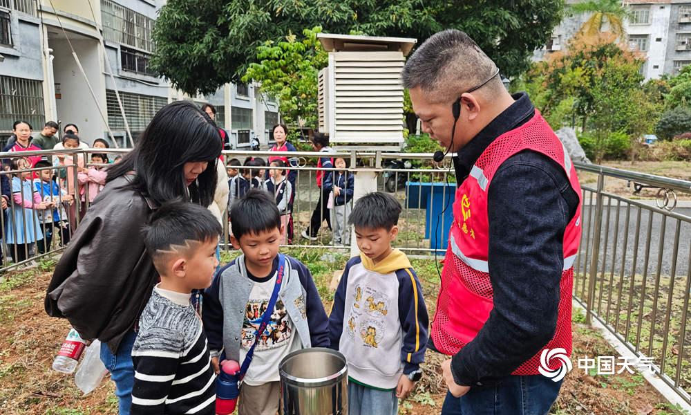 中国天气网广西站讯3月21日,在第66个世界气象日来临之际,南宁市武鸣区气象局迎来了一群活泼可爱的壮乡萌娃。孩子们牵着爸爸妈妈的手,迈着轻快的脚步走进气象站,开启了一场充满趣味与新知的亲子研学之旅。图为孩子和家长们在气象站参观。(图/陆程蕾 李亦乔 文/蒙菲菲)