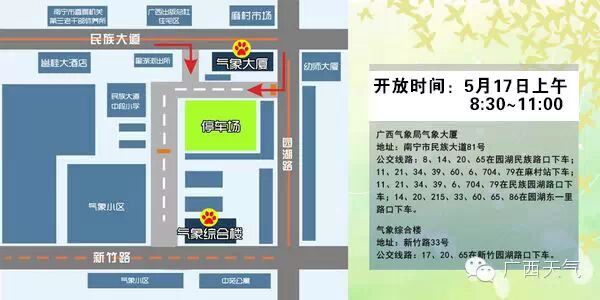 3、报名成功的朋友请于5月17日我们微信回复的预约时间到民族大道81号广西气象局凭手机号码在工作人员签到处签字参观。