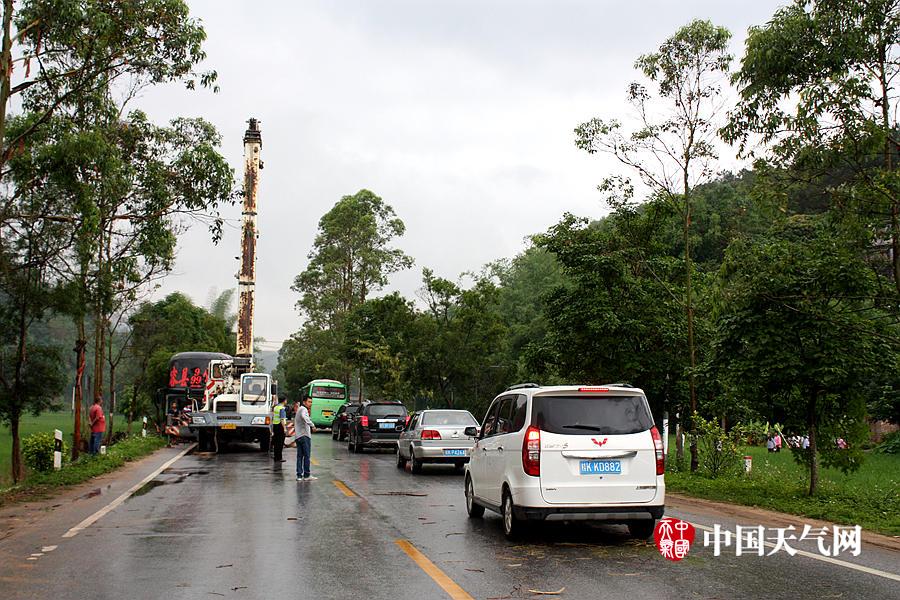 客车安置好后,马路恢复通车。(摄影:杨馥祯)