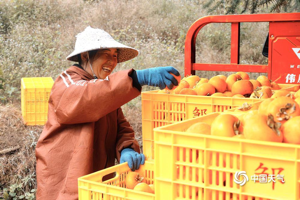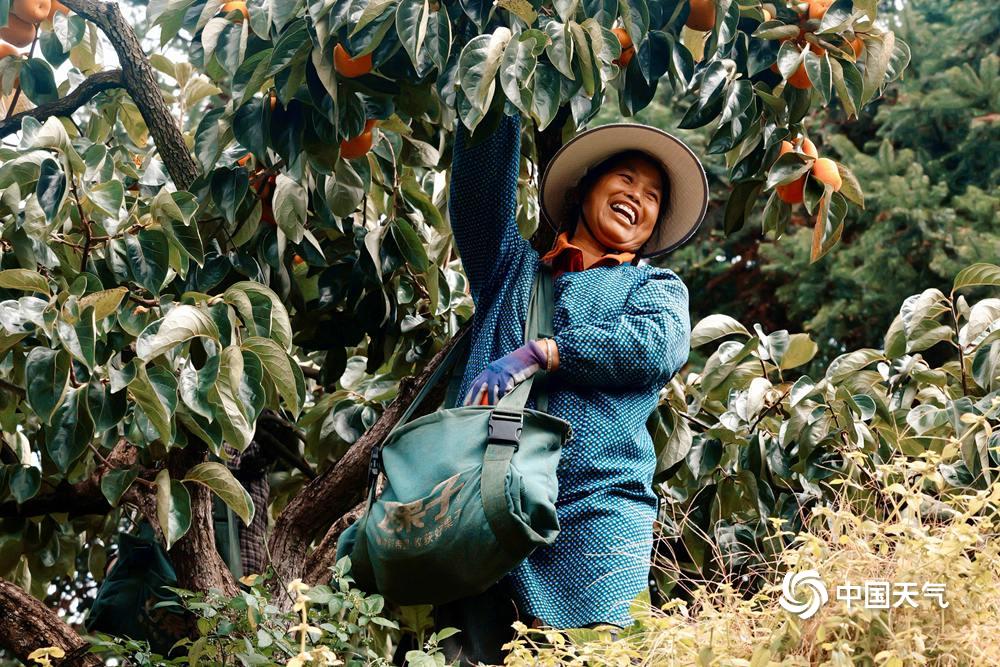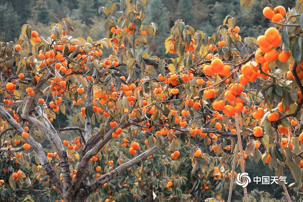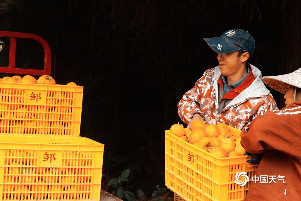 中国天气网广西站讯 秋尽冬来,眼下又到了柿子成熟的时节,河池南丹六寨镇柿子园硕果累累,金黄的柿子沉甸甸的挂满枝头,成为山间一道亮丽的风景,果农喜笑颜开收柿忙。把枝头的红火,酿成柿饼的绵长甜香,愿日子 “柿柿” 如意。(图/许恒瑞 文/韦双双)