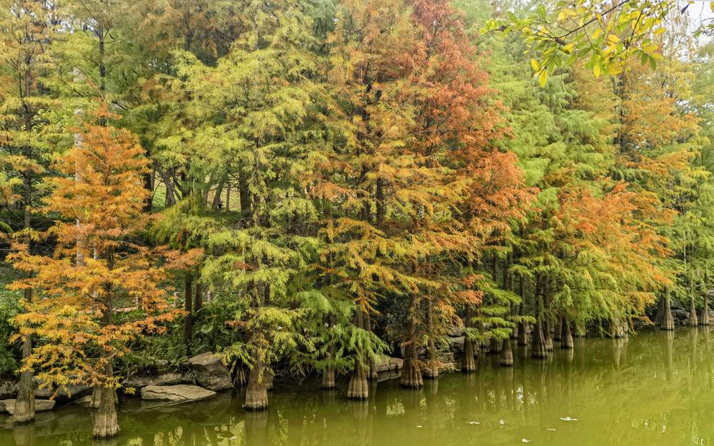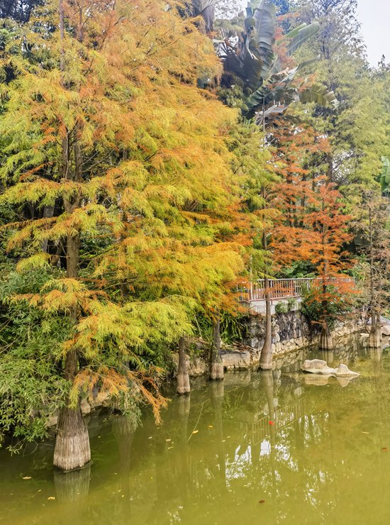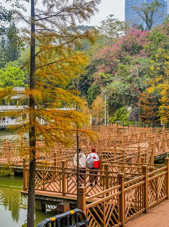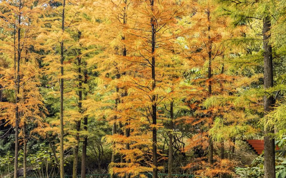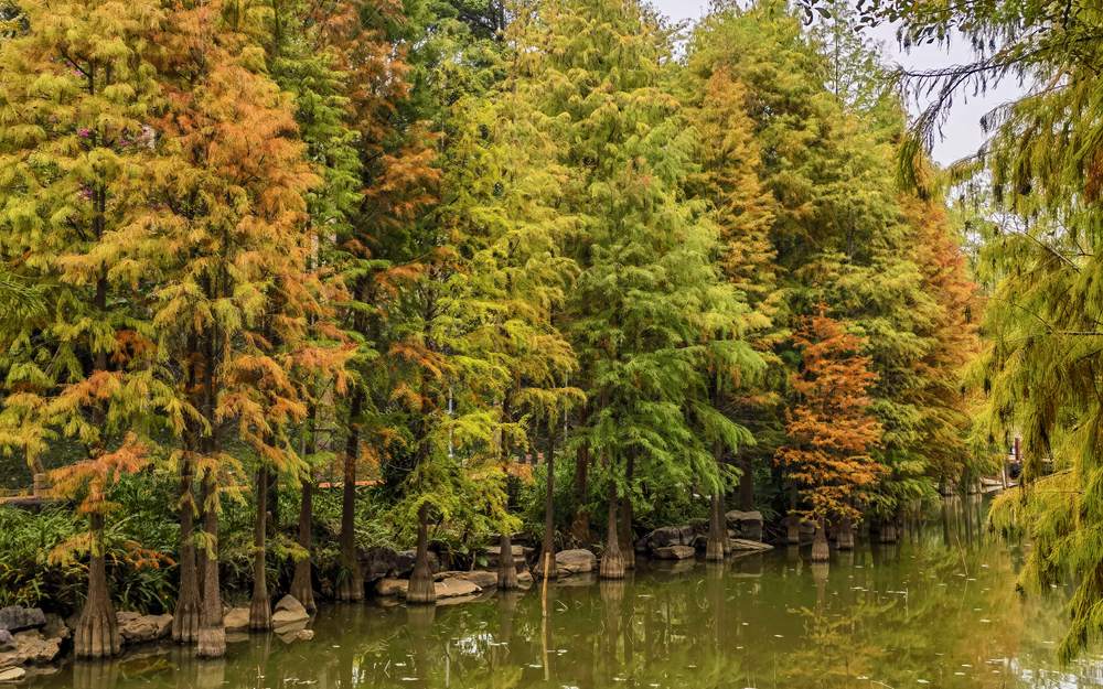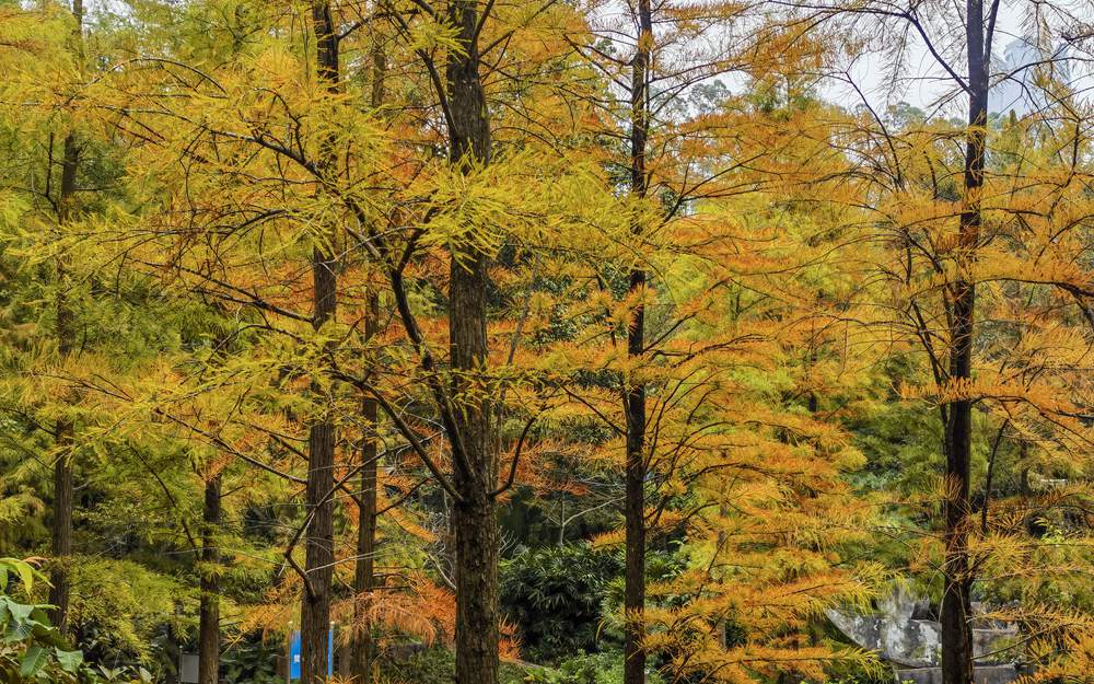 中国天气网广西站讯 12月4日,园内的落羽杉褪去青绿,染上深浅不一的绯红与金黄,快约上家人朋友,赴一场与落羽杉的冬日之约,把这份限定的红韵与美好定格在镜头里~(图/曾海科 文/曹钰佳)