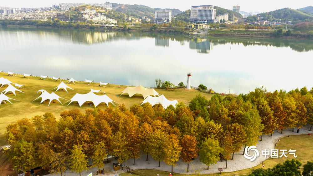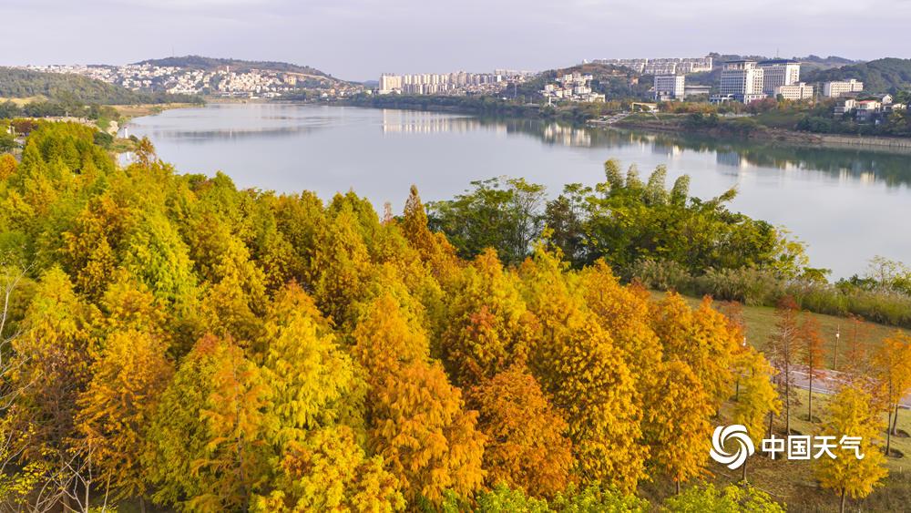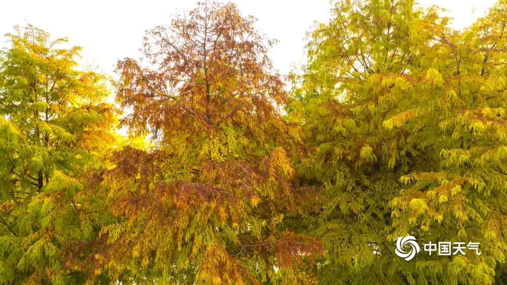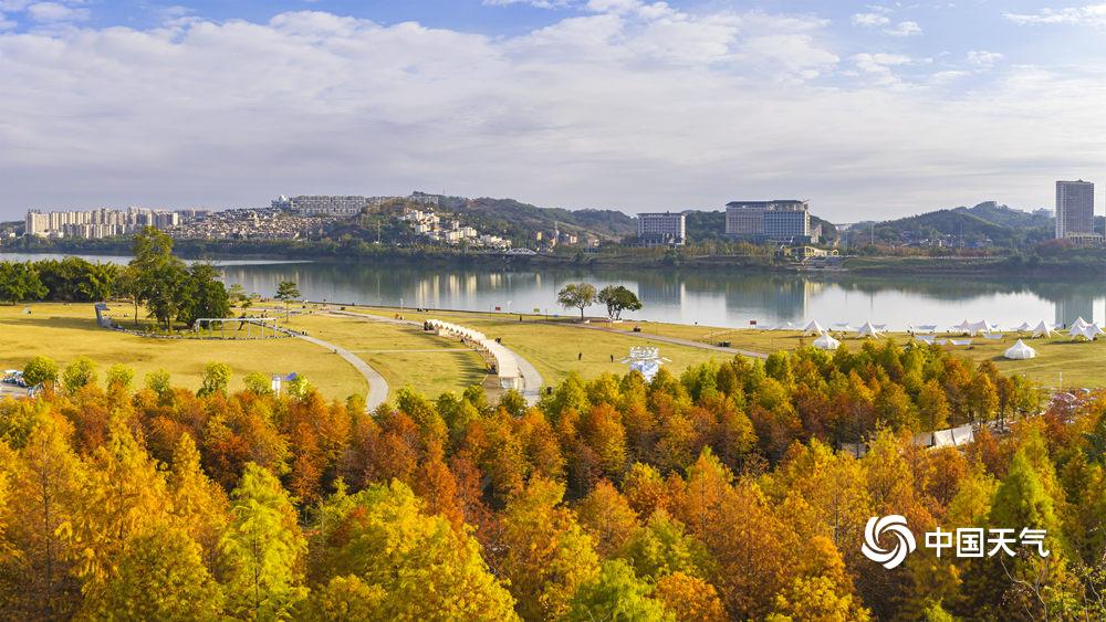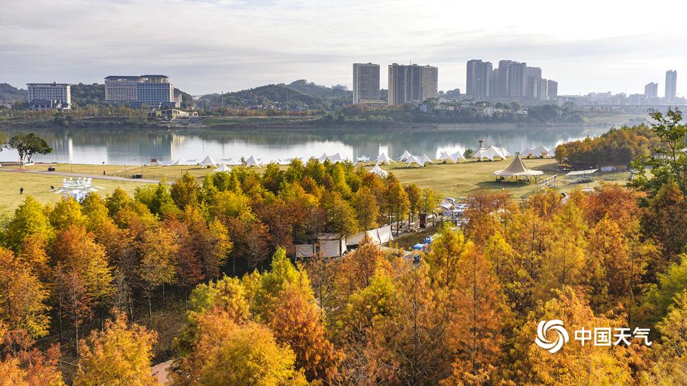 中国天气网讯 12月15日,南宁明媚的阳光把邕江边的落羽杉“晒红了脸”,绯红的羽叶缀满枝头,像打翻了上帝的调色盘,将秋冬的河岸晕染成一幅暖调油画。(文/黄丽娜 图/曾海科)