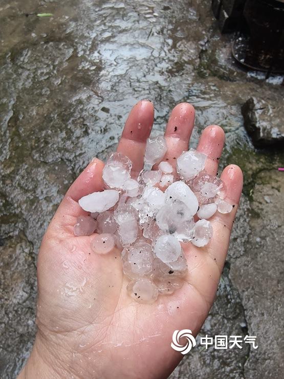 中国天气网广西站讯 今天(29日)广西自西向东有强雷达回波生成,百色市田林县局地出现冰雹,冰雹直径最大约50毫米。(图/谭依倪 文/章子涵)