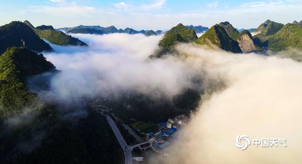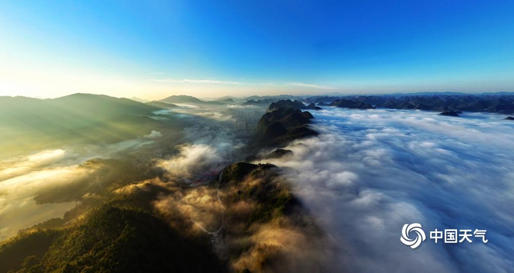 中国天气网广西站讯 4月8日清晨,百色乐业县城被缭绕晨雾轻轻笼罩,云雾漫过街巷与楼宇,远山近城在云海中若隐若现,宛如一幅徐徐展开的水墨丹青。晨光穿云而来,云雾随风流转,满城诗意盎然,这难得的云海奇观,让人流连忘返、沉醉其间。(图/李金龙 文/罗旺庆)