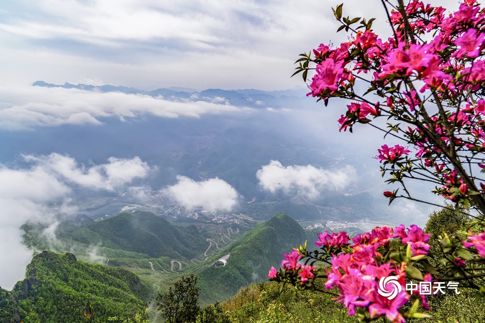 贵州六盘水:云雾缭绕 杜鹃花开(1/6)