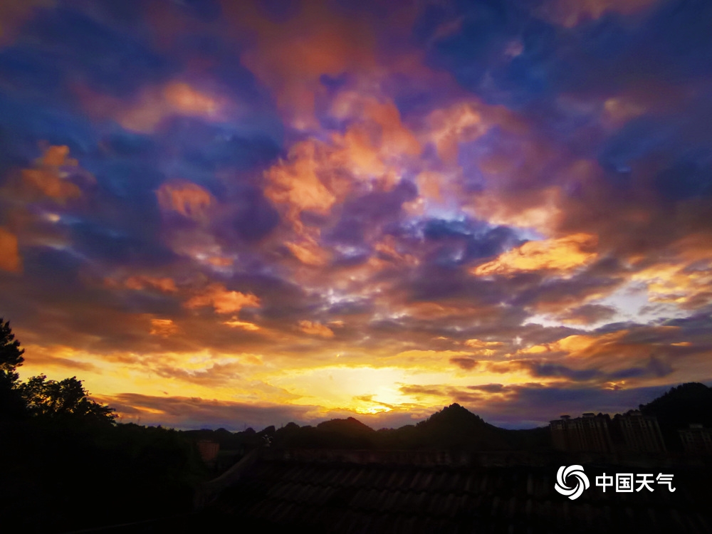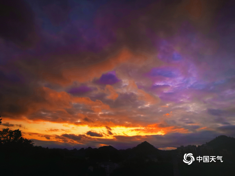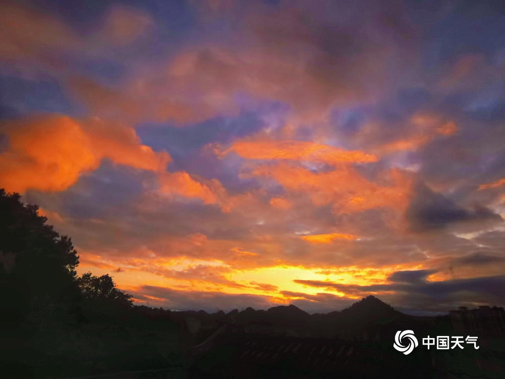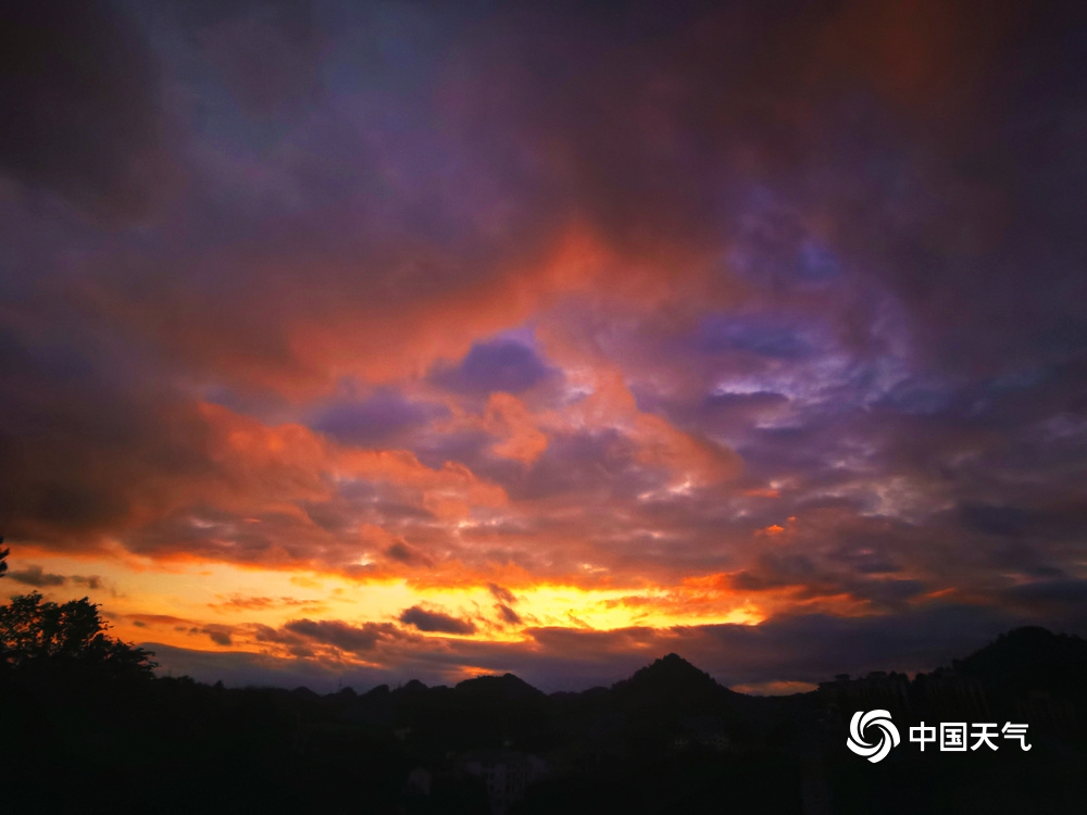 贵州凤冈:雨后晚霞染红天际 美不胜收(1/6)