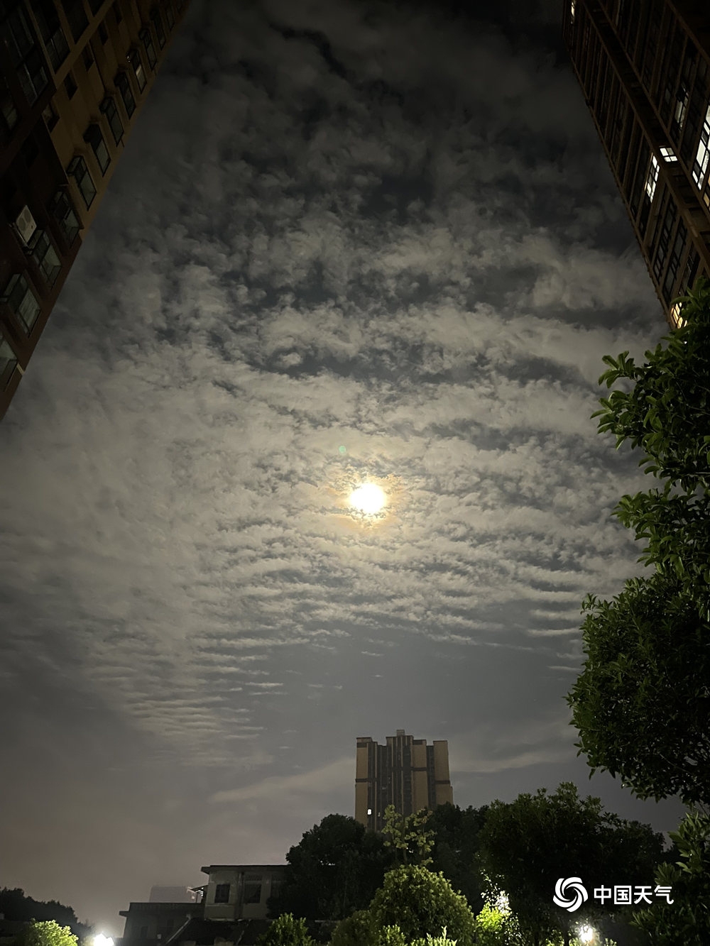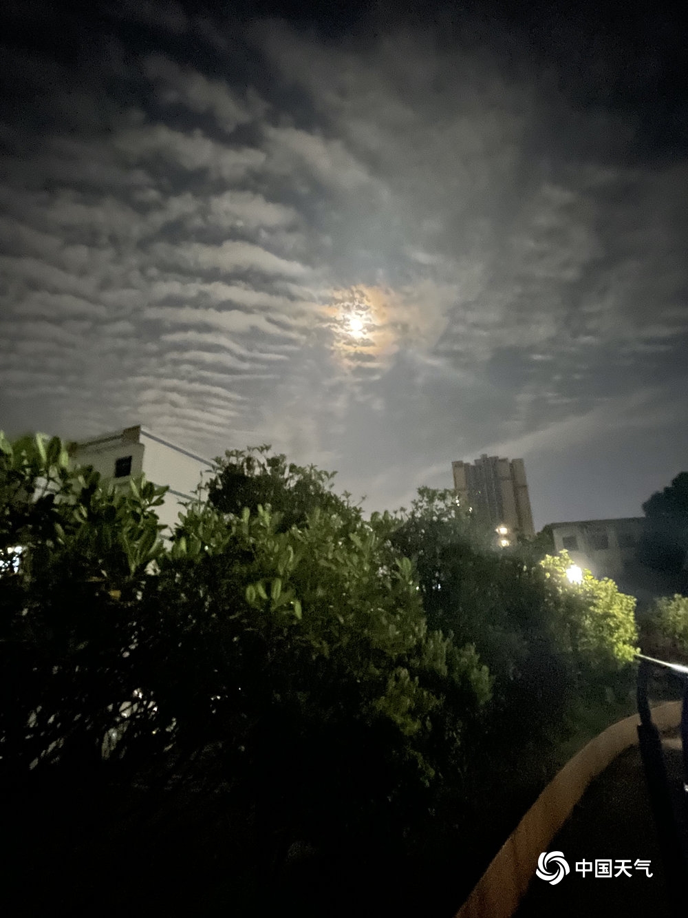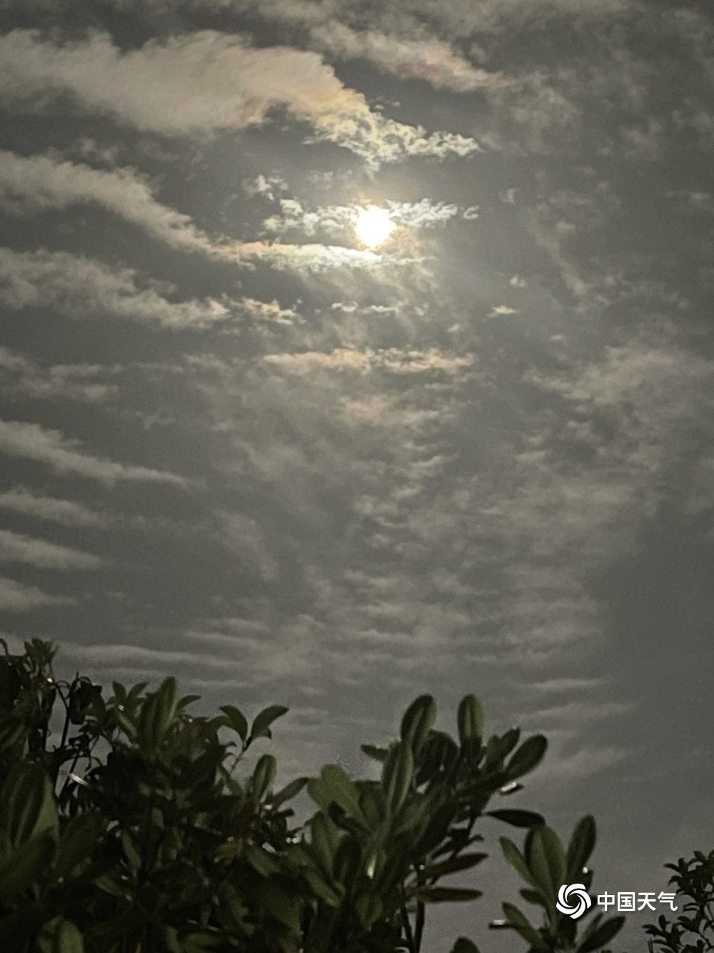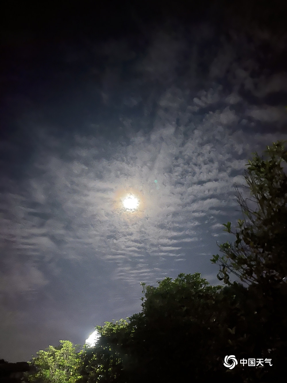 贵州安顺:层状高积云与满月相伴 美轮美奂(1/6)