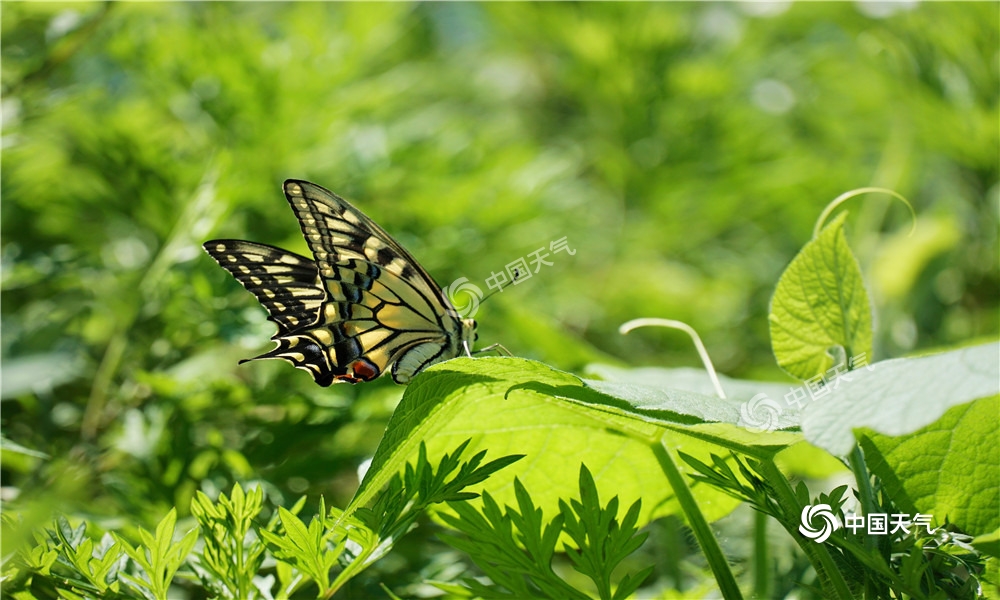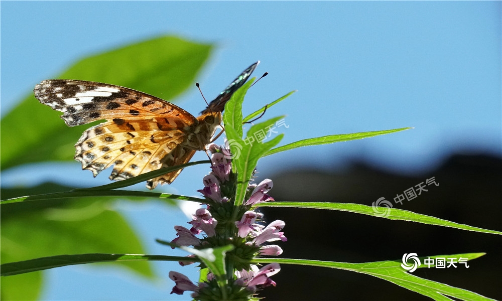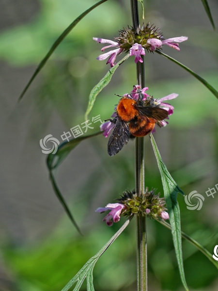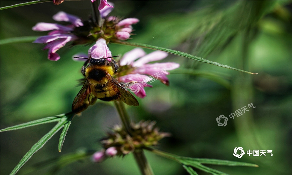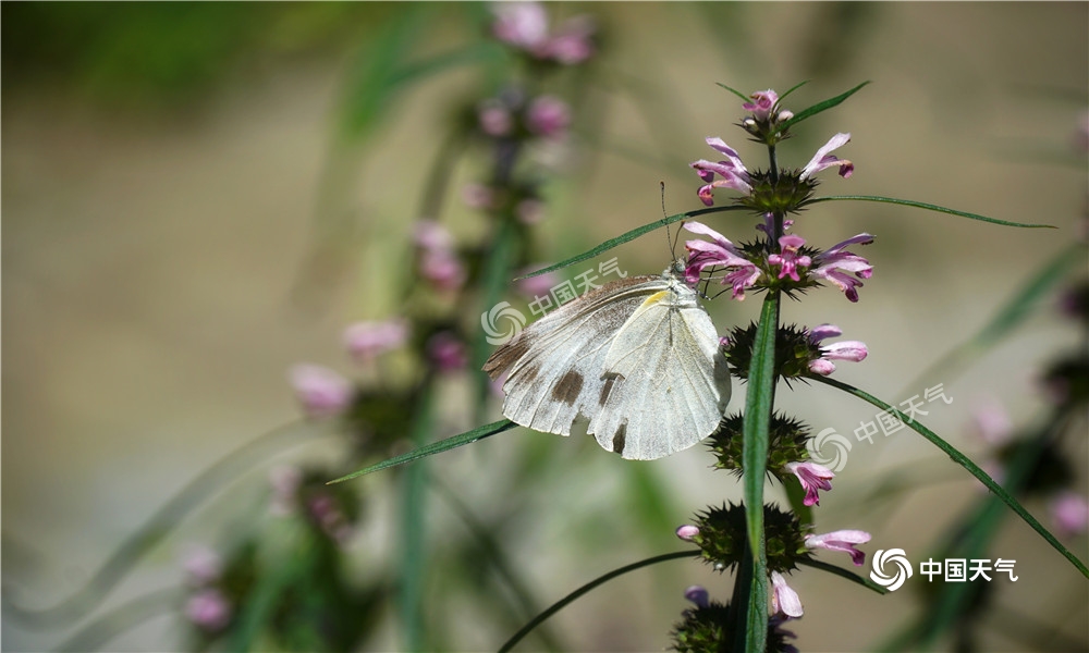 6月14日,贵州黎平迎来久违的晴好天气,阳光下的益母草在微风中摇摆,吸引了许多漂亮的蝴蝶和蜜蜂驻足,蜂飞蝶舞,嬉戏花间。(韦方龙/摄)