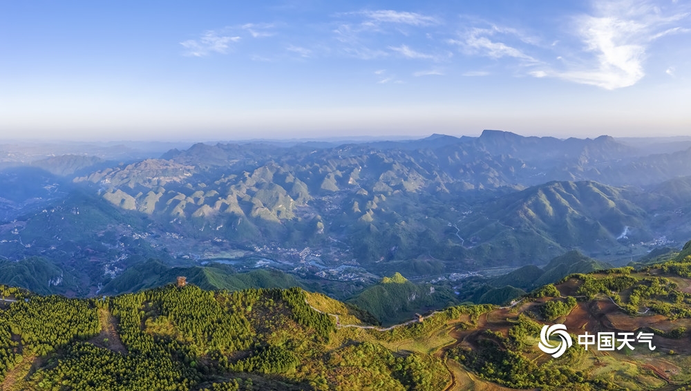 贵州六盘水:娘娘山峰丛流云奔涌 美如画卷