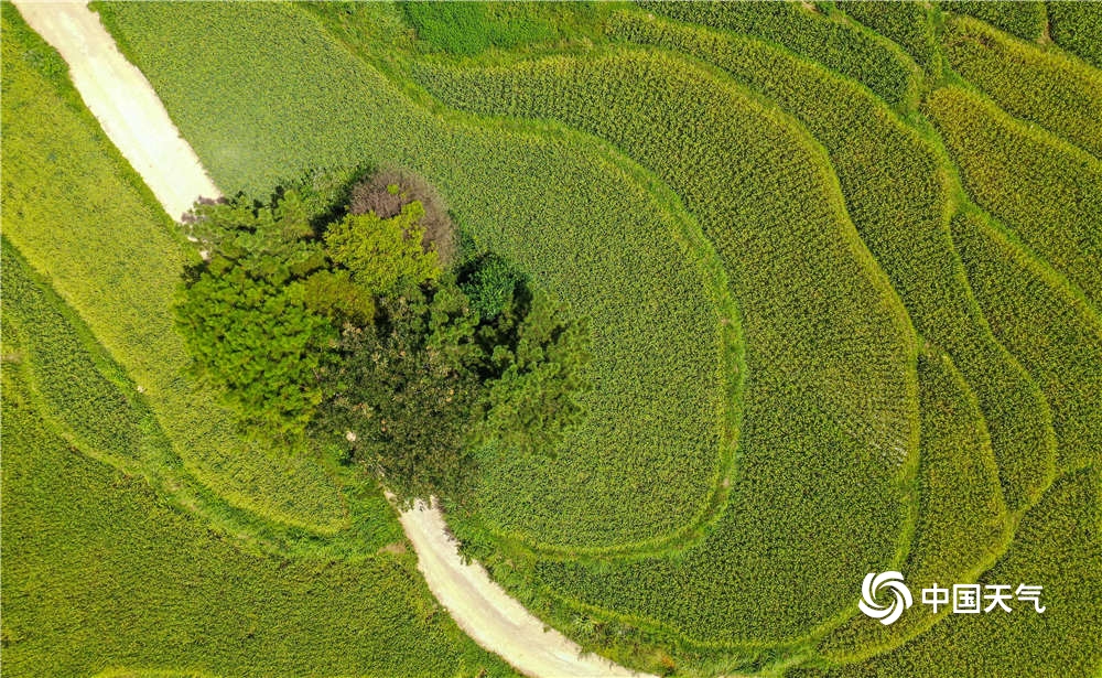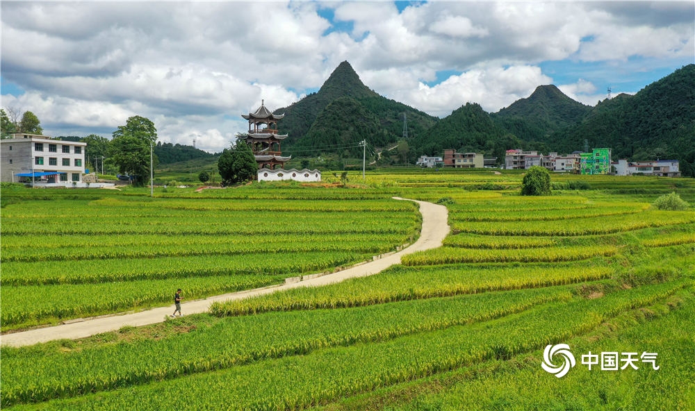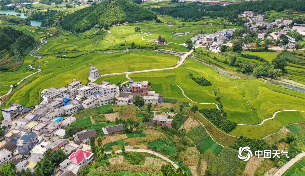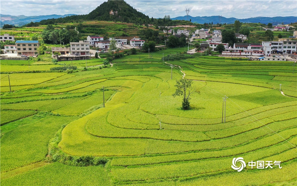 秋日,贵州省玉屏侗族自治县的山村里水稻即将迎来成熟收获期,梯田高低错落。