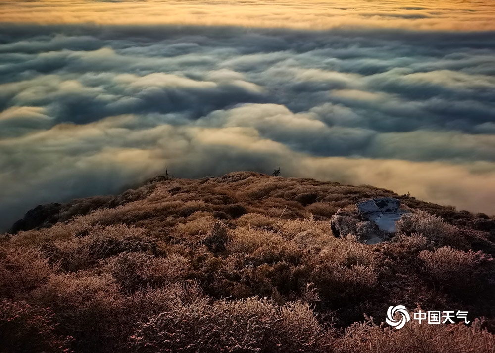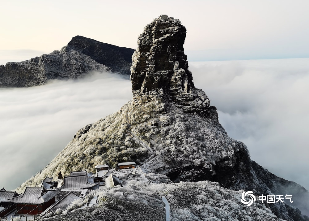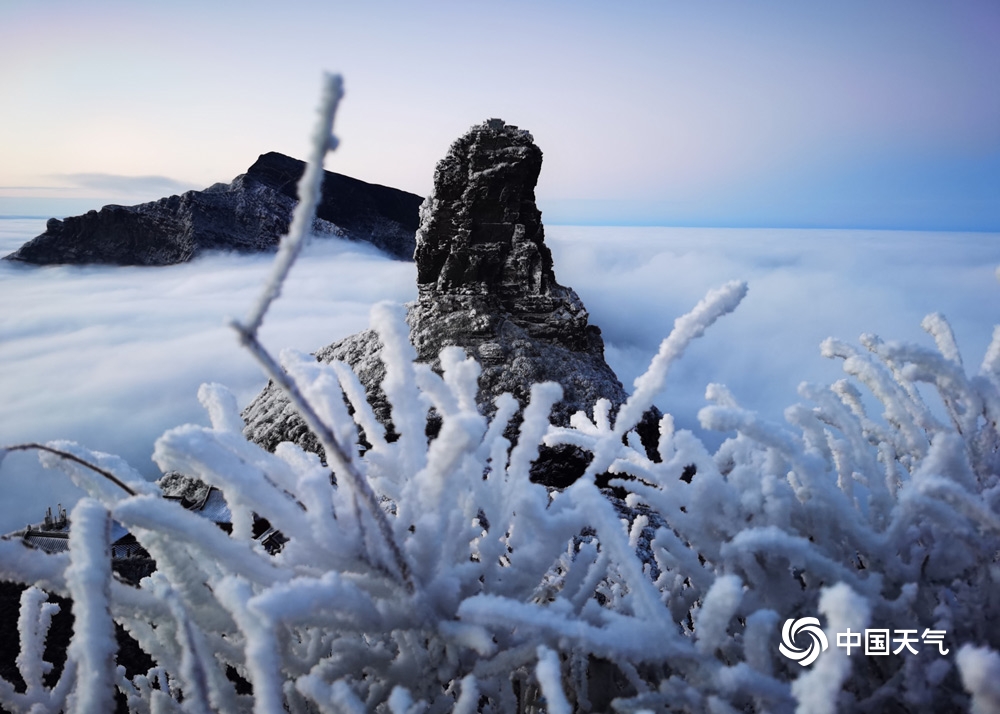 12月4日,入冬以来首场降雪后,梵净山仿佛换了一件新衣,银装素裹,金银剔透,犹如童话世界一般,雪景和清晨云海相呼应,奇观异彩,景色迷人。