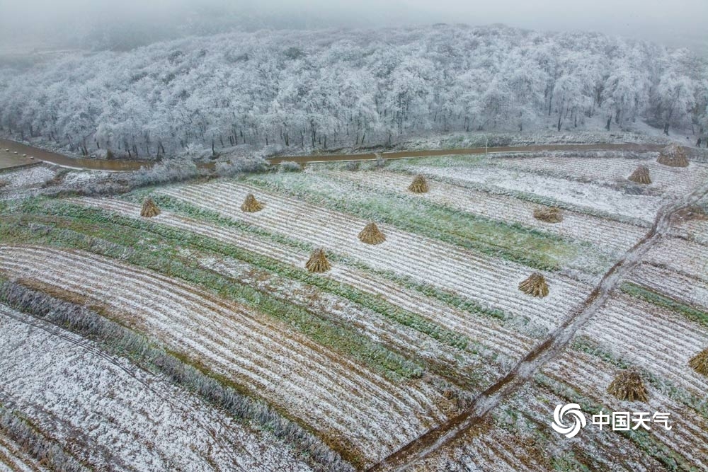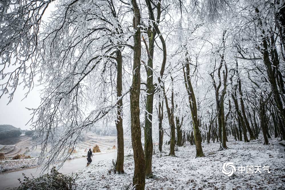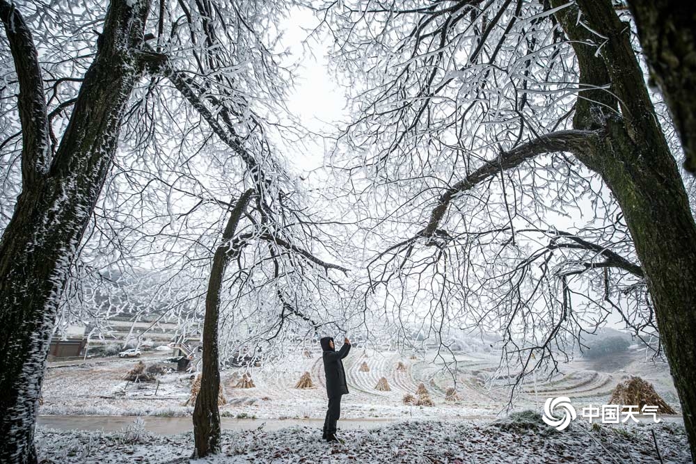 12月4日,贵州省毕节市威宁县多地迎来降雪,并出现雾凇景观,宛若冰河世纪,银装素裹的冰雪美景吸引了众多市民前来观赏。图为12月4日,威宁县雪山镇冰雪世界。