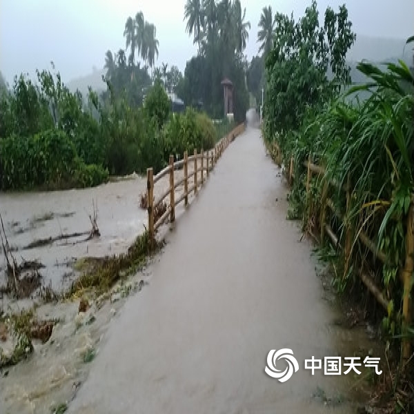 2019年09月02日 16:519月2日10时40分前后,南海热带低压的中心在海南省万宁市万城镇沿海登陆,受其影响,2日至6日,海南岛将出现强风雨天气。图为海南琼中县湾岭镇乌石村委会长边村漫水桥。(文/吴洁飞 图/刘文雄)