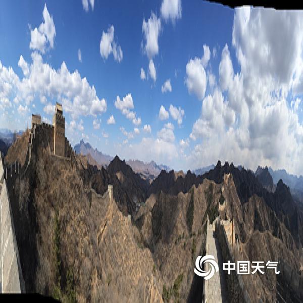 近两天,河北承德金山岭长城灰霾尽除,阳光重现。蓝天白云里,长城上空呈现出一番风卷云涌的景象,气势磅礴,甚为壮观。(摄/周万平)