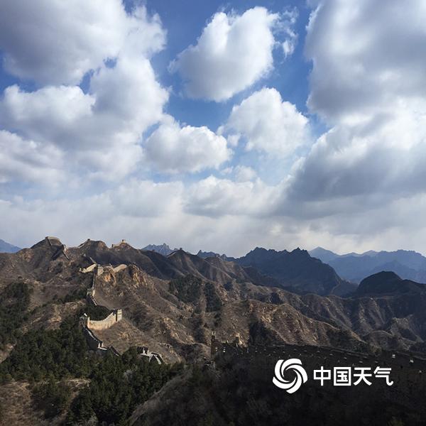 2019年03月08日 08:43近两天,河北承德金山岭长城灰霾尽除,阳光重现。蓝天白云里,长城上空呈现出一番风卷云涌的景象,气势磅礴,甚为壮观。(摄/周万平)