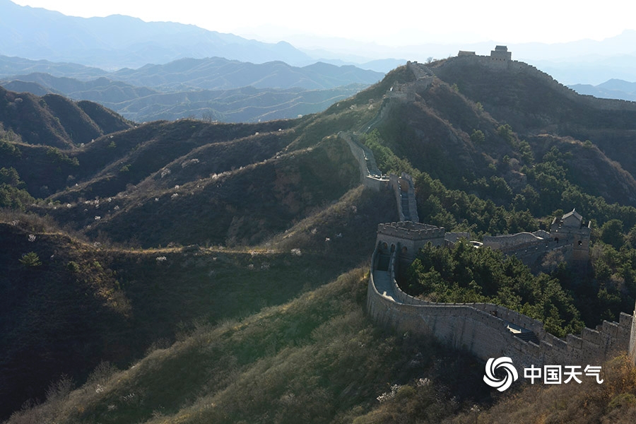 随着春季的到来,近日河北承德金山岭长城景区杏花大面积开放。在蓝天白云的天气下,满山白色的杏花妆点着山峦,犹如“巨龙”的长城穿梭其中,使整个景区显得生机勃勃,春意盎然。(拍摄:周万平 周广山)