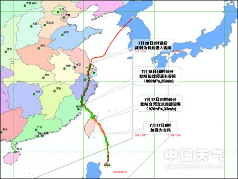 | 2008年07月17日22时 | 24.4 | 121.7 | 970 | 33 |