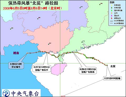 | 2008年08月08日05时 | 21.5 | 105.1 | 993 | 16 |