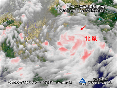 台风“北冕”2008年08月07日16:30(北京时间)NOAA-16气象卫星监测图像