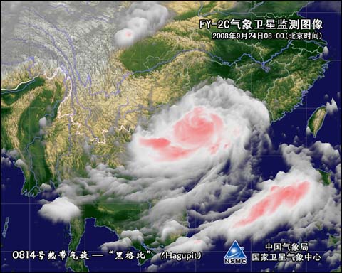 “黑格比”2008年9月24日08:00(北京时间)气象卫星监测图像