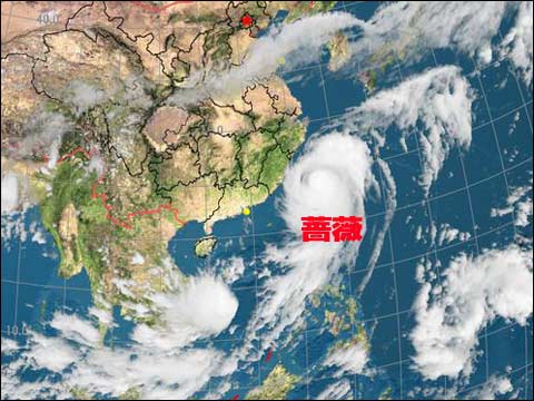 “蔷薇”2008年9月28日16:00(北京时间)气象卫星监测图像