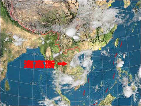 “海高斯”2008年10月03日22:00(北京时间)海南登陆卫星监测图像