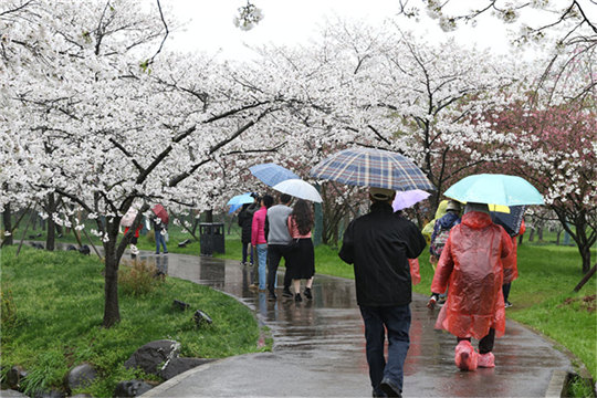 随着3月中旬武汉天气迅速回暖,武汉樱园里的万株樱花树相继绽放,形成一片粉红色的海洋,蔚为壮观。(拍摄:李必春)