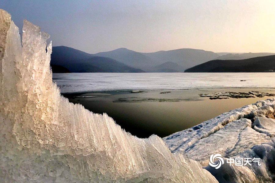 3月4日,位于黑龙江省牡丹江市的镜泊湖银妆素裹,仿若冰河世纪。往日流水潺潺的河溪凝结成洁白的“玉带”在山间舞动,让人感叹大自然的鬼斧神工。夕阳西下,冰封的湖面和残雪在落日余晖的映照下熠熠生辉,别有一番韵味。(图/刘克兴 文/张美丽)